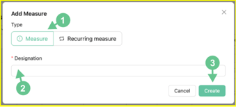 Nachdem Sie auf Neue Maßnahme geklickt haben, wählen Sie im neuen Fenster Wiederkehrende Maßnahme (1) aus. Die Auswahl ist grün hinterlegt.
